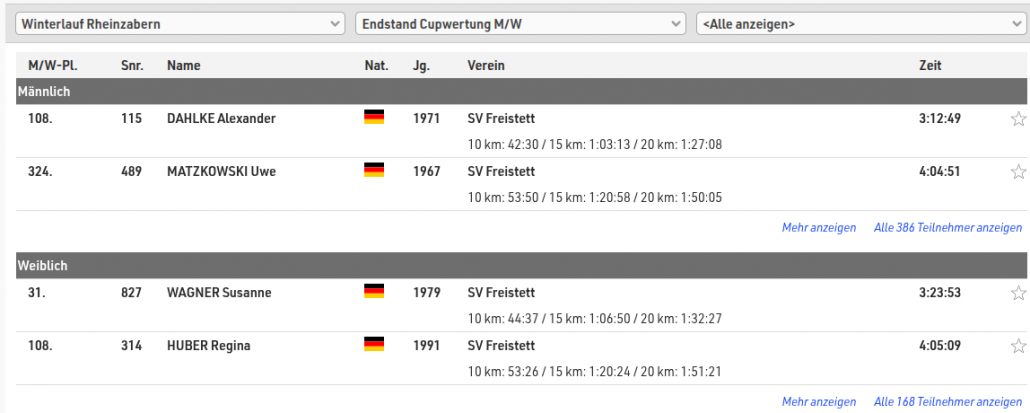 Meines Wissens gab es vom SVF noch Niemanden, der bei der Winterlaufserie eine Podestplatzierung erzielen konnte, aber bitte korrigiert den Schreiber dieser Zeilen. Was ist aber nun bei den abschließenden 20km so alles passiert?